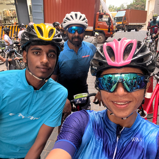 We rode like this until the final climb, when there was ( as expected), an attack on the climb by blossom. She surged past me. As I shifted the gears getting ready to sprint, I saw Priya and Swati responding to the attack. I was blocked in by a vehicle in front and Swati on the right. So, I slowed down to let her pass. Post this, I put in all my effort as I left the saddle for the final sprint to the finish line surging past Swati and trying to catch up with Priya in front of me. I saw Ankush waiting for me at the finish line screaming - " Chala Chottay!"